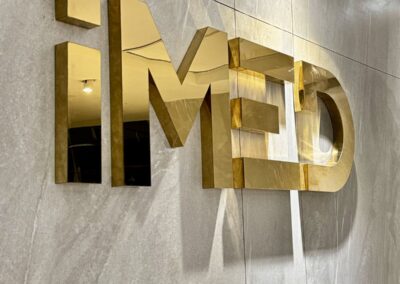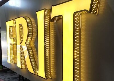 👉 Exemples : logos muraux en aluminium brossé, lettrages 3D pour halls d’accueil, signalétique directionnelle.