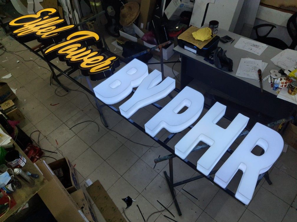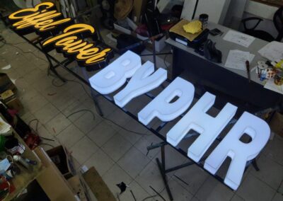 👉 Exemples : lettrages lumineux, logos en relief, signalétique vitrine.